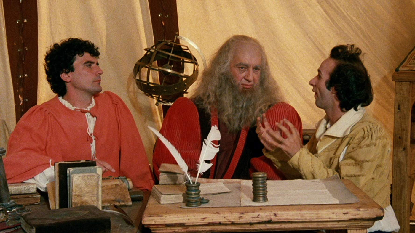 Nel volume celebrativo e cinefilo “1895-1995: Buon compleanno cinema” presentato dal blobbista Marco Giusti ed edito da Comix, sedici celebri matite del fumetto rendevano omaggio, con un loro fantasioso disegno, un cult o un classico della storia del cinema. Tra questi sedici film “fondamentali” del centenario cinematografico, c’era anche l’omaggio a Non ci resta che piangere, fatto attraverso una grande tavola fumettistica che raccoglieva tutta la storia della pellicola. L’autore del disegno, in una breve nota sul perché avesse scelto proprio questo film, ammetteva sin da subito che la commedia era sgangherata nella messa in scena e con una sceneggiatura scritta “sciattamente”; però era un’opera che lo faceva smascellare dalle risate. Non gli si può dare completamente torto, perché (ri)vedendo la pellicola si nota sin da subito che i primi a divertirsi moltissimo sono i due protagonisti, e questa gioiosità e solarità riescono a trasmetterla anche allo spettatore, specialmente perché alcune battute sono diventate dei tormentoni, citate ancora a memoria da molti. E senza dimenticare che, nel medesimo 1995, L’Unità propose una lunga collezione di 30 VHS, denominata “Capolavori Italiani”, in cui compariva anche la pellicola di Roberto Benigni e Massimo Troisi, a certificare (giustamente?) la grandezza di questa pellicola. A distanza di molti anni, però, come si potrebbe accogliere questa commedia in costume? Merita veramente tutta questa attenzione?