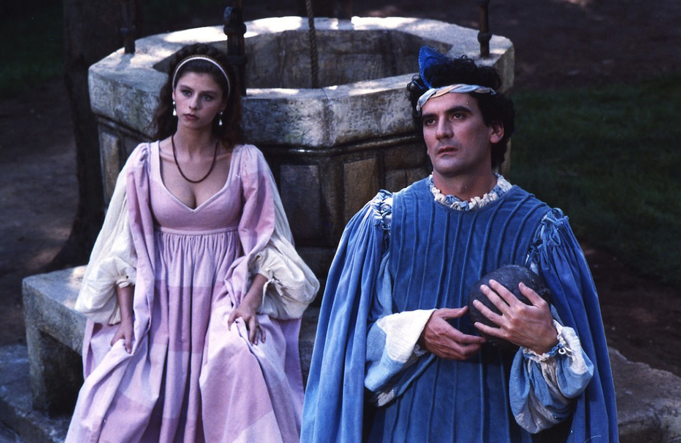 Realizzato in una doppia versione, cinematografica e televisiva, Non ci resta che piangere uscì nei cinema per le festività natalizie del 1984, e gli introiti finali furono di oltre 15 miliardi di lire, attestando la pellicola come il maggior incasso della stagione 1984/1985. La versione per la televisione, invece, fu trasmessa da Canale 5 l’8 dicembre 1986, e aveva una durata di 145 minuti, in cui erano presenti alcune scene in più, soprattutto con il personaggio di Astriaha. Il noto duo di attori, che rientrano nel gruppo di comici qualificato come “melancomici”, con questa bizzarra commedia, al di là di meri intenti commerciali, voleva creare un duo comico che fondesse le loro due differenti tipologie di comicità, un po’ come Totò e Peppino. Però, solo per fare una piccola e puntigliosa precisazione, questa non fu la prima pellicola in cui apparivano insieme, avendo infatti già recitato, seppure non direttamente a stretto contatto, in Morto Troisi, viva Troisi! (1982) di Massimo Troisi e in F.F.S.S., cioè: ‘… che mi hai portato a fare sopra Posillipo se non mi vuoi più bene?’ di Renzo Arbore, in cui l’attore napoletano, non accreditato, era uno degli arabi (c’era persino Vasco Rossi!) che danzavano durante la canzone “Arabian Sound” cantata dallo sceicco Beige (Roberto Benigni). Prima di Non ci resta che piangere, titolo tratto da un verso di Francesco Petrarca (“Epistola ad Barbatum sulmonensem”), i due attori si erano espressi in due distinti modi espressivi, e mentre l’attore napoletano aveva raccolto consensi critici e ampio successo con l’esordio registico Ricomincio da tre (1981) e confermato con Scusate il ritardo (1983) la sua voglia di raccontare storie intimiste e riflessive, Roberto Benigni nel 1983 aveva esordito dietro la macchina da presa con Tu mi turbi, opera composta da quattro brevi storie stralunate che sottolineavano la sua comicità stravagante (almeno fino a Il mostro). Aiutati in fase di sceneggiatura da Giuseppe Bertolucci, regista e mentore del primo Benigni, i due comici s’inventano una storia “assurda” che possa far sgorgare situazioni esilaranti a iosa. Sceneggiatura, comunque, da intendere come semplice struttura, perché i frizzi e i lazzi riempitivi di Troisi e Benigni molte volte erano improvvisate, proprio come nelle pellicole del Principe De Curtis e De Filippo. È su questo elemento, ossia il copione, però che batte la nota dolente di tutto. L’idea geniale di catapultare Mario e Saverio, due comuni figure del Novecento, nell’immaginario paese di Frittole nel 1492, non riesce mai a essere veramente avvincente, e si rivela piatta come le scenografie del paese medievale. Una storia tirata via, in cui primeggiano soltanto alcuni spassosi scambi di battute tra i due attori, e alla fine tutto sembra un gioco in cui la coppia, pseudo-adolescente sperduta in un altro mondo, celia solamente tra di loro divertendosi a punzecchiarsi. Anche i rimandi alla coppia Totò e Peppino, alla fine, risultano poco incisivi, sia nella scena di dettatura della lettera a Savonarola, e sia nel maccheronico spagnolo inventato da Saverio mentre parla con Astriaha (Uguales). Due gag che, tra l’altro, provengono direttamente da Totò, Peppino e la… malafemmina (1956), pellicola che seppur costruita su una sceneggiatura semplice, era di altra caratura. Riguardando Non ci resta che piangere, quello che rimane è solamente il ricordo dell’attore Troisi e di un Benigni ancora cavallo selvaggio. E nella memoria restano solo alcune battute comiche, come l’esternazione di Mario in risposta al predicatore: «Si si… mo’ me lo segno…»; oppure la più quotata, ossia quella con il doganiere, che ripete ai due: «Chi siete? […] Cosa portate? […] Sì, ma quanti siete? […] Un fiorino!».