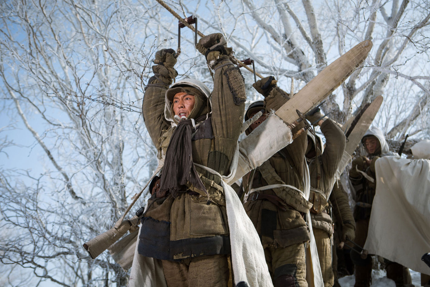 Dunque, ci troviamo a fare i conti con la solita scissione tra ciò che viene raccontato e il come viene raccontato, con il secondo elemento chiamato a salvare il salvabile. Nonostante dietro lo script ci sia un’opera patriottica e un romanzo di successo come “Tracce nel bosco innevato, del quale la pellicola è la trasposizione per il grande schermo, la scrittura di The Taking of Tiger Mountain presenta, da una parte una carenza strutturale, dall’altra un racconto che non riesce a fare presa e a coinvolgere veramente lo spettatore. Tsui Hark prende in prestito le pagine di Qu Bo e le trasforma in un action-adventure soporifero vestito da war movie, con il quale continua il suo percorso personale di esplorazione dei generi, raccontando le gesta di una piccola truppa dell’Esercito Popolare di Liberazione (EPL) durante la guerra civile cinese.